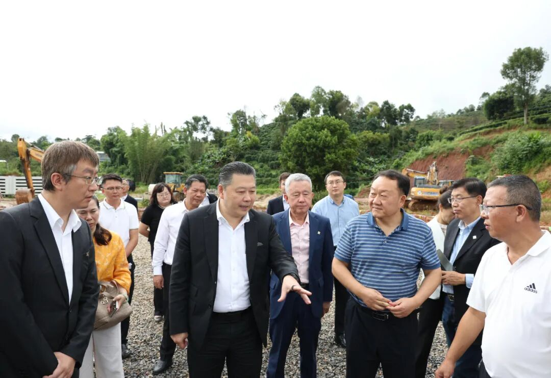 ▲谢吉人集团董事长(前排左二)同普洱市委常委、思茅区委书记胡选坤(前排右二)在项目现场交流。