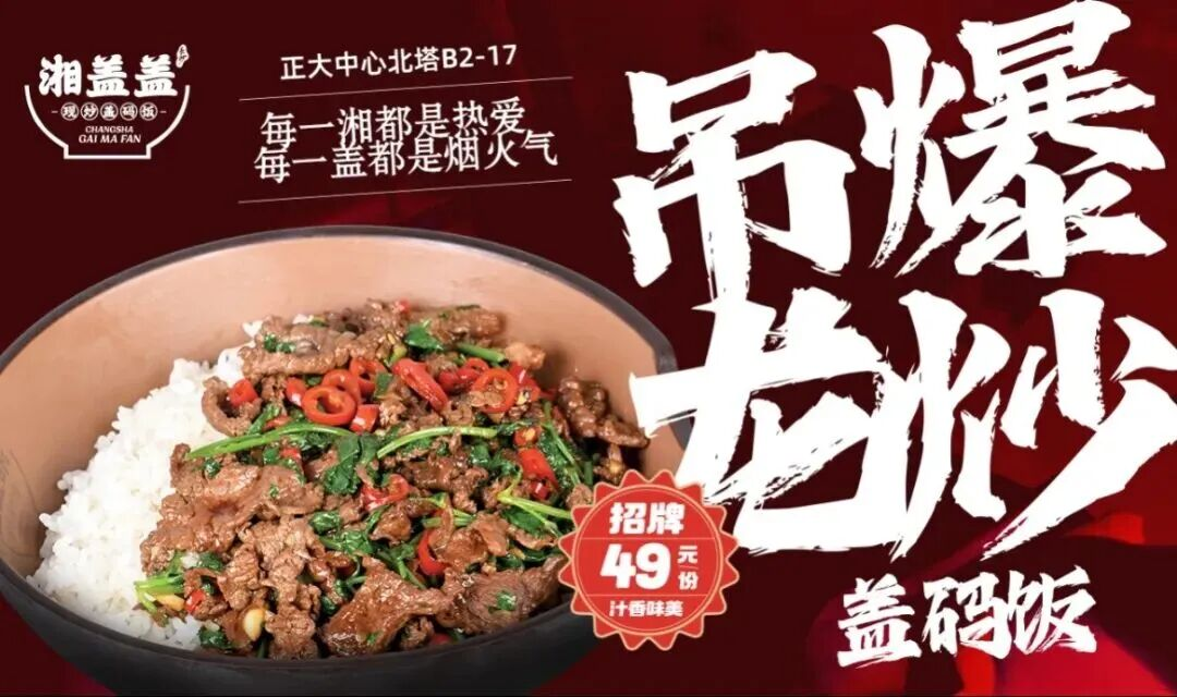 湘盖盖大厨现炒更下饭为品牌理念,打造高性价比的湘菜盖码饭,让更多的顾客享受到长沙地道烟火气。