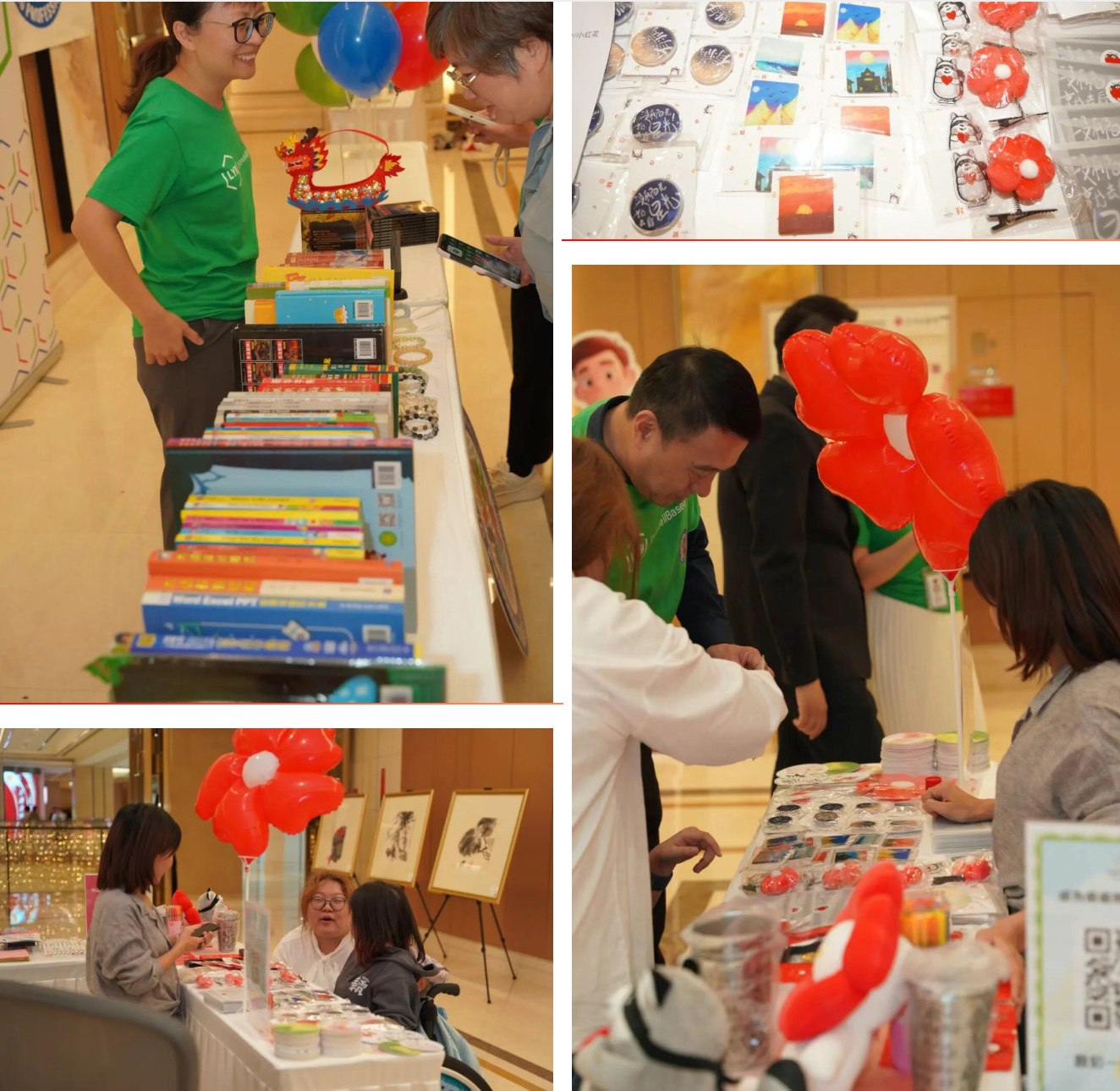公益画展以作品传递着生命的坚韧力量;楼宇义卖区更是热情涌动,参与者纷纷献爱心,所捐出的款项将全部用于罕见病群体帮扶,让每一份善意都能精准抵达需要的人身边;爱心留言区贴满了对罕见病群体的真挚祝福。从区域布置到流程衔接,细节里满是对参与者与患者群体的用心呵护。