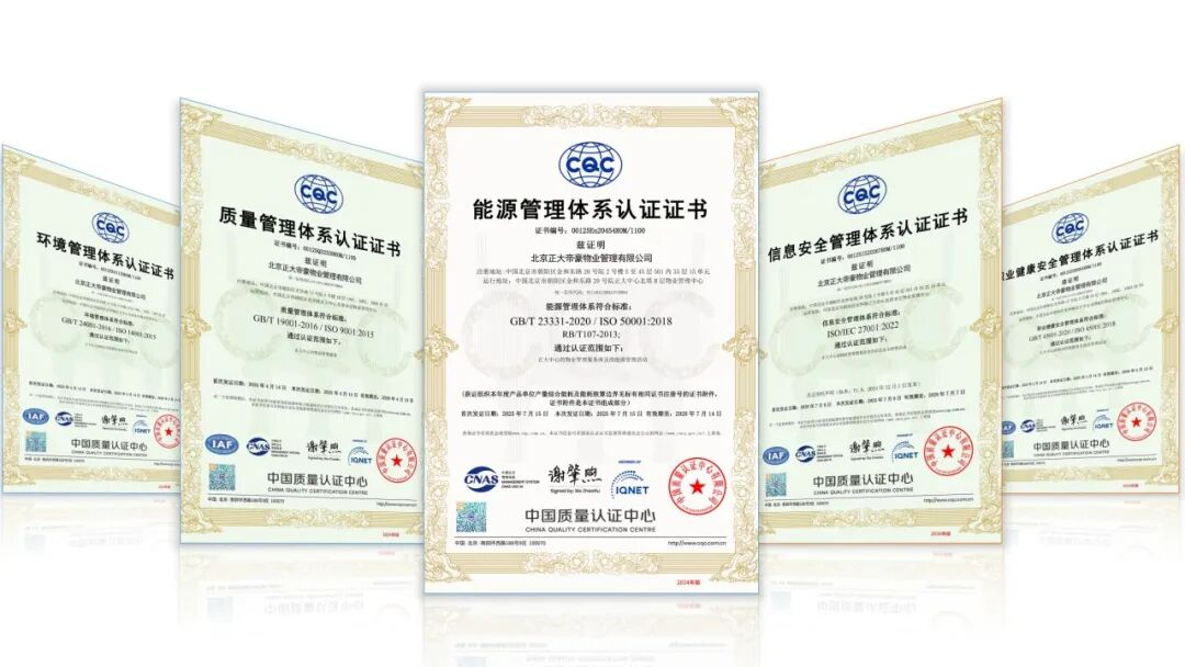 目前,正大中心已成功取得 ISO 14001环境管理体系、ISO 45001职业健康安全管理体系、ISO 9001质量管理体系认证、 ISO 50001能源管理体系及ISO 27001信息安全管理体系认证,达成 “五体系一体化” 的标准化管理方法,并将以此为全新起点,打造可持续、可信赖的美好旅程。