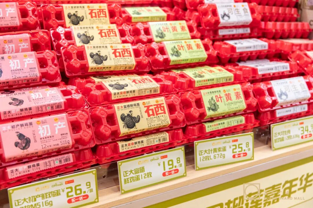 ▲塔玛纳部长(左二)在2024泰国榴莲嘉年华活动现场参观,罗家顺集团资深副董事长(左一)介绍正大鸡蛋产品