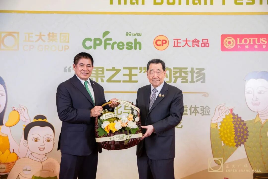 ▲双方互赠礼物会谈结束后,代表团一行出席了正大2024泰国榴莲嘉年华活动。该活动加深了中泰合作和交流,展现了泰国榴莲等的独特魅力。活动现场,泰国水果、正大泰国泰虾、泰国零食、正大鸡蛋等琳琅满目的正大产品吸引了众多消费者品尝与购买。泰国文化表演更是将活动氛围推向高潮,展现了泰国文化的独特风情。