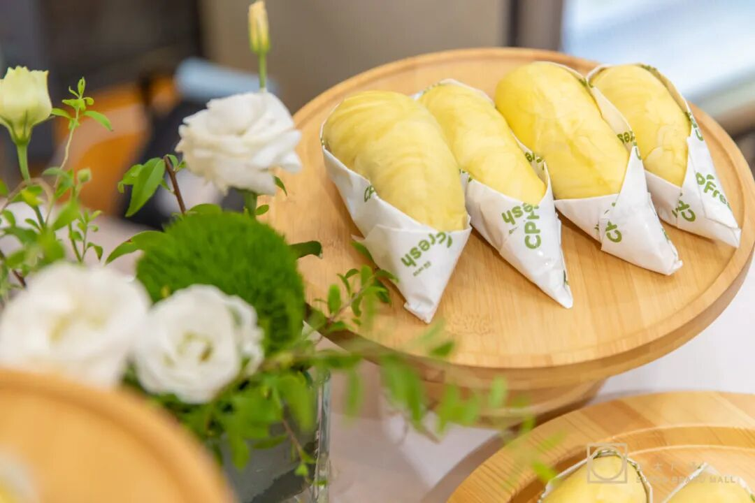 ▲活动现场产品展示▲塔玛纳部长与榴莲人偶互动