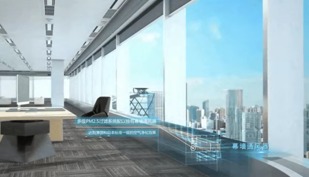 正大中心以绿色理念与智慧科技为核心,打造对标国际的高品质商务空间。比如,采用先进的三级空气净化系统,采用初效过滤器+双级静电过滤器+紫外线杀菌UV灯相结合,办公区、商业区均能达到中国标准一级(优)空气净化效果。