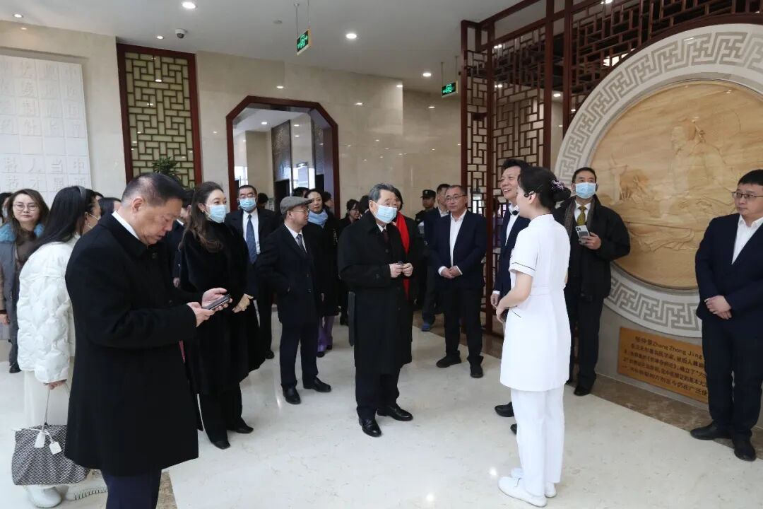 ▲谢国民集团资深董事长参观天津中医药大学第一附属医院。