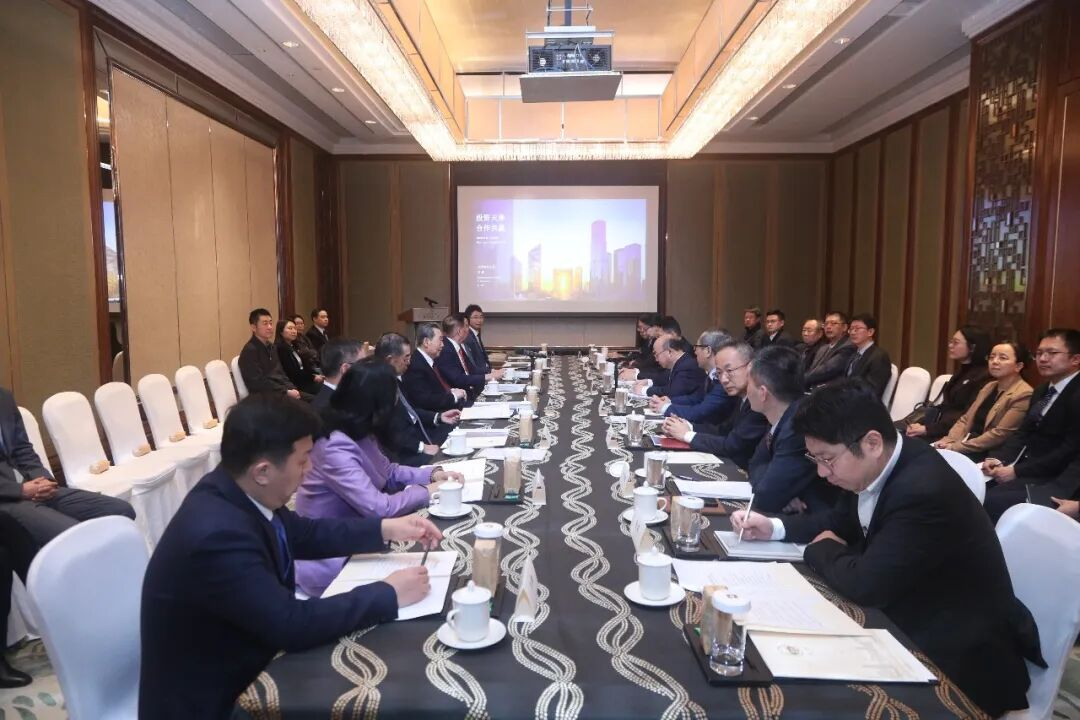 25日下午,谢国民集团资深董事长一行与天津市人民政府外事办公室主任栾建章,市商务局副局长李建,滨海新区区委常委、副区长罗平,天津城市基础设施建设投资集团有限公司党委书记、董事长赵鹏及有关企业代表进行座谈,深入了解天津与滨海新区经济发展环境和服务外资情况,并就有关合作项目进行交流。