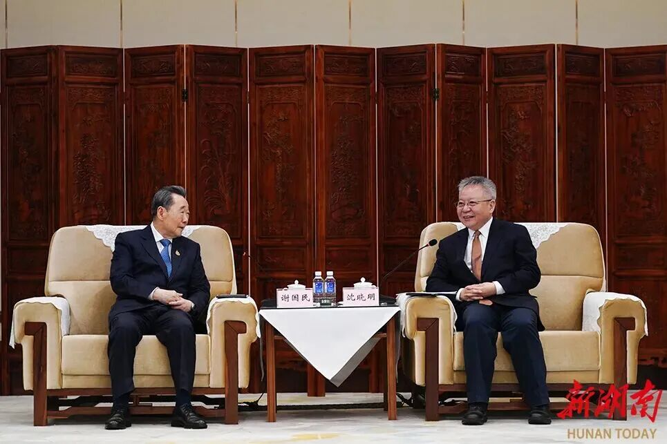4月10日下午,湖南省委书记沈晓明在长沙会见谢国民集团资深董事长一行。